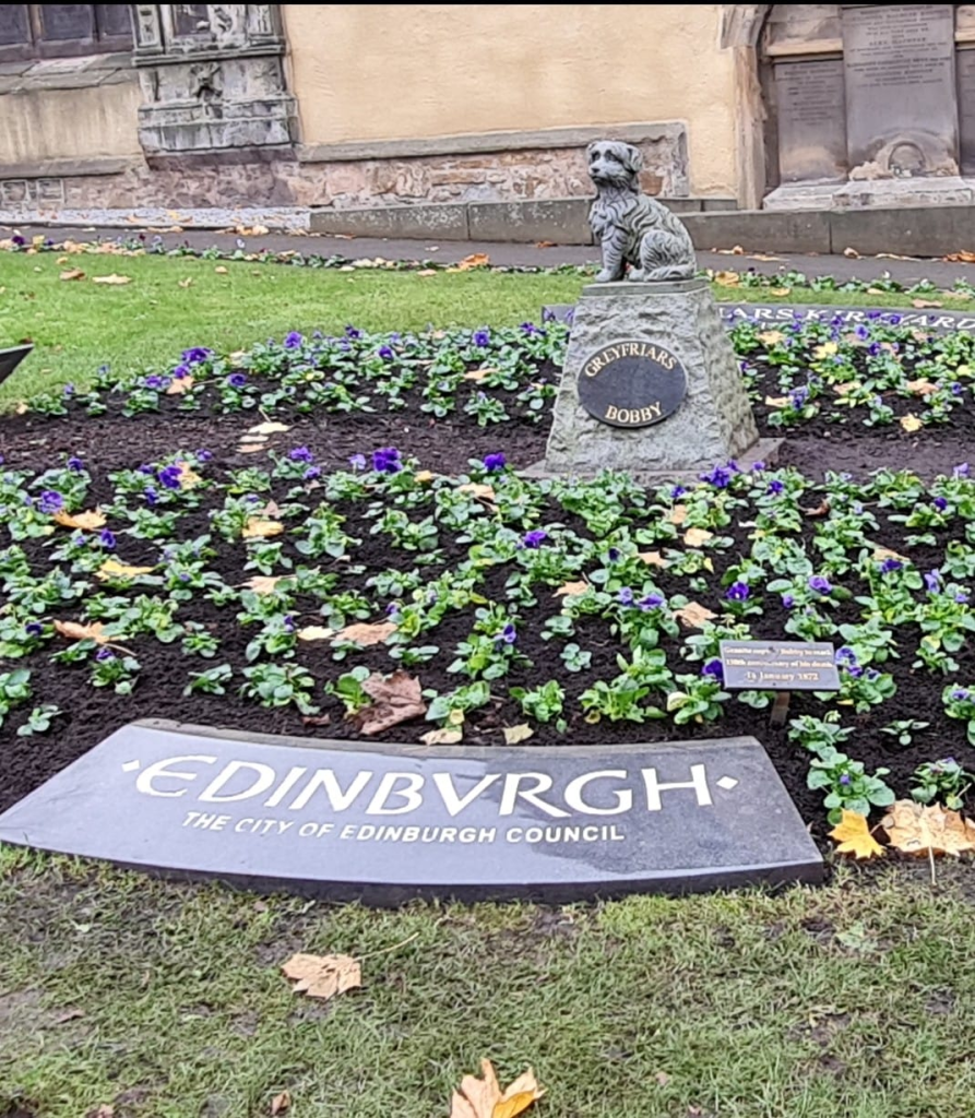Un nuevo día abraza las corrientes de luz y las voces de un viento apasionado. Recorremos unas calles de la Royal Mile, doblamos, subimos por otra vía y nos sorprende un retazo de tierra jaspeado de tumbas y lápidas. Junto a la entrada hay un pub, Greyfriars Bobby, de 1772.