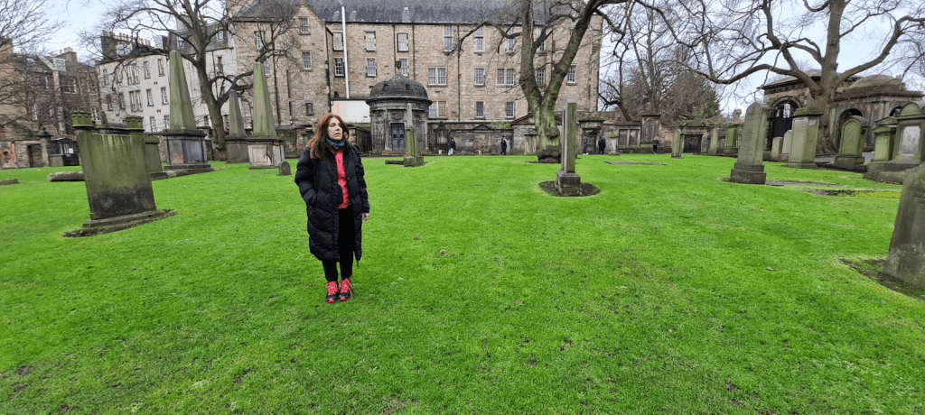 Entramos al Cementerio Greyfriars, el más visitado de la ciudad. Hace décadas no hay enterramientos aquí. Parte de la rareza del lugar es que se trata de una suerte de cementerio jardín. Los turistas lo recorren como un curioso parque, más poblado de tumbas que de árboles. En el verano algunos edimburgueses lo eligen para reposar, tomar sol o leer. El cementerio rezuma historia, una conexión con Harry Potter y el recuerdo del fiel perro Bobby.