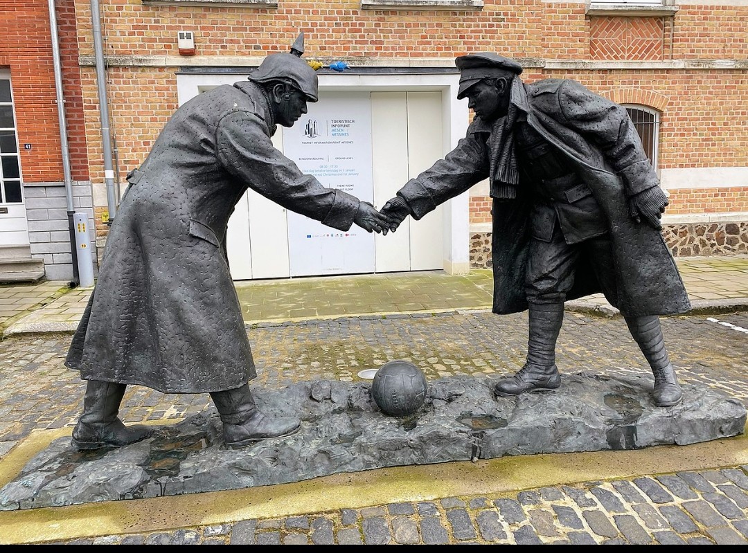 Como la música, el fútbol fomentó la momentánea reconciliación. En Bélgica, en 2014, la UEFA (la Unión de Federaciones Europeas de Fútbol) celebró el centenario de la tregua de Navidad de 1914, con varias actividades, en las localidades belgas de Ypres y Comines-Warneton, en las que estaban las trincheras. El presidente de la UEFA, Michel Platini convocó a los jefes de gobierno de Francia, Bélgica, Alemania, Italia, Reino Unido e Irlanda, y se colocó un monumento como parte del evento conmemorativo. El cese espontáneo al fuego decidido por los soldados rasos, por la infantería, por el pueblo combatiente, fue un fenómeno cultural de alto alcance, cuyas características eran el hartazgo ante la muerte en una guerra poco comprendida; el callado repudio a sus propios gobiernos y oficiales y generales; el principio del “vive y deja vivir”; la humanización por la música y el deporte; la expectativa de que la difusión periodística de las treguas pudiera influir en la opinión pública a favor de la paz; el deseo de racionalidad; el reconocimiento de que un pobre soldado francés, inglés o alemán tenía mucho más en común entre ellos que con los oficiales de sus propios ejércitos. Las treguas de la Primera Guerra Mundial son la memoria de una unidad posible aun en medio de la destrucción.