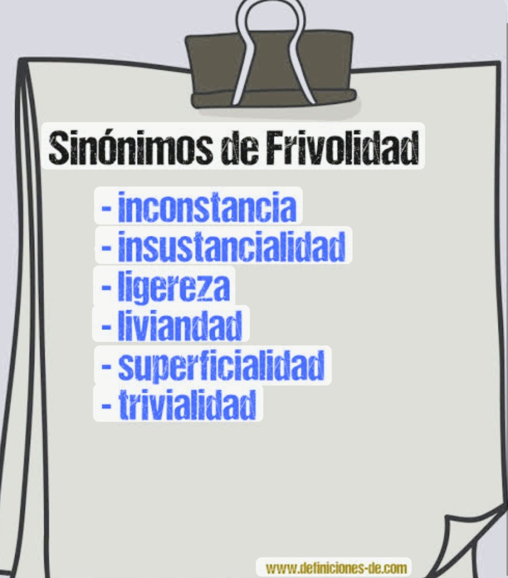 Según el Diccionario de la Real Academia Española, de frívolo dícese “calidad de frívolo, superficialidad, falta de seriedad”. Seriedad y frovolidad así, en esta primera aproximación, serían conceptos antitéticos. La palabra frivolidad viene del latín frivolus (ligero, vano, fútil) y el sufijo «dad» que remite a la cualidad de ser superficial, insustancial, y, nuevamente, privado de seriedad. En su origen linguístico, frivolus aludía a recipientes de barro quebradizos. Lo débil o quebradizo, a su vez, es referencia a lo poco sólido o sustancioso, lo fácilmente partible en pedazos.