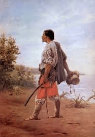 Espíritu gemelo del baquiano es el rastreador. En él, el ojo es el exquisito órgano de percepción de los detalles milimétricos. Nada que encuentre en el paisaje escapa al taladro incisivo de su mirada. Con la ayuda del menor indicio, el rastreador rompe el peligro de la pérdida, de la incomunicación, del aislamiento, e instaura un seguro y continuo camino hacia el destino buscado. En la amplitud de la Pampa, él construye un camino no mediante piedras o tierra apisonada. Sus caminos son deductivos. Determina un sendero al unir lógicamente distintos indicios. Por esta vía, es capaz de encontrar el camino hacia un poblado, o también el paradero de un criminal reclamado por la justicia. Entonces, el rastreador «mira la tierra y distingue montones de polvo dispuestos por el viento, las aguas, o por el paso de alguien… Por la huella del casco infiere una historia detectivesca, y el criminal deja escrita la marcha a sus ojos, como en un plano» (11). Para el rastreador, el espacio es la memoria donde se acumulan continuas capas de indicios inteligentes. Cada detalle en la materia observada es usina para la proyección de caminos posibles y para la recreación de historias pasadas. En el Facundo de Sarmiento, Calíbar es el arquetipo del rastreador.