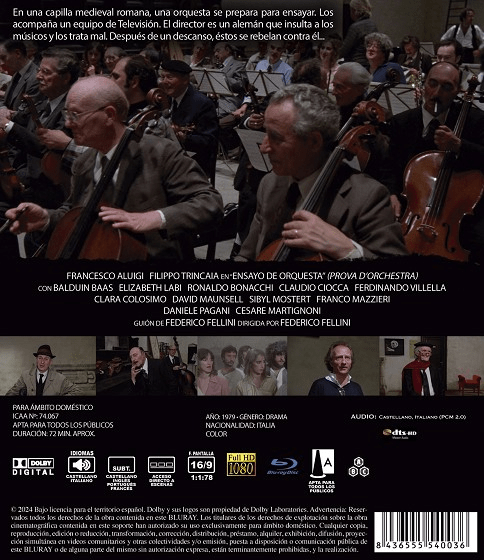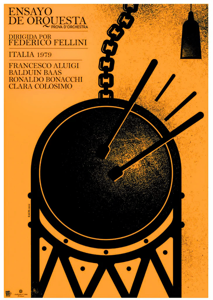 El genio de Fellini brilla con especial fuerza en Amarcod, en 8 1/2, La dolce vita o Y La nave va. Su Ensayo de orquesta (Prova d’orchestra, 1979) no alcanza el vuelo artístico de las obras anteriores, pero su principal mérito quizá se encuentra en estimular una reflexión intensa sobre la música culta occidental, sobre sus vacíos y contradicciones y, más allá, sobre la música como una experiencia de posibilidades perdidas.