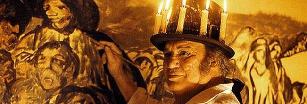Francisco Rabal (1926-2001) interpretando a Goya mientras pinta sus célebres Pinturas Negras, en el film Goya en Bourdeos (1999)