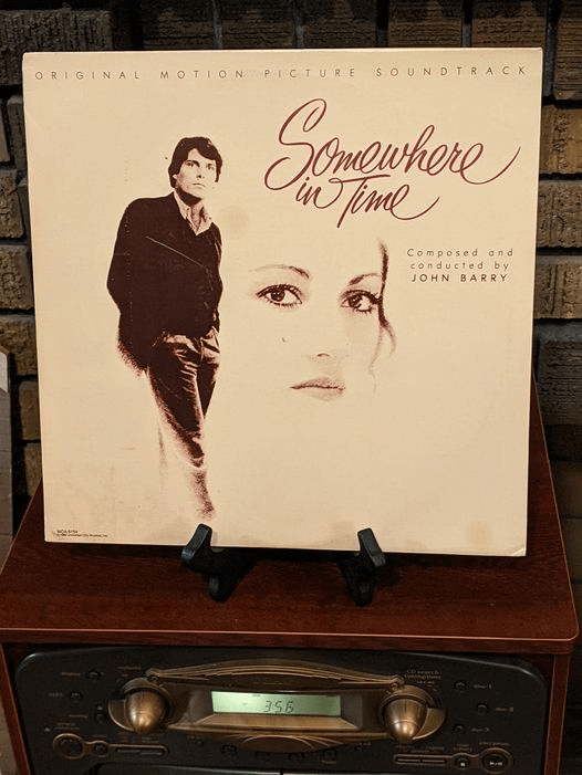 Disco de vinilo de Somewhere in Time sobre una radio vintage (Foto en vinylstories.ca)